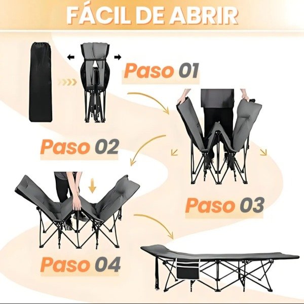 Incluye colchón removible, fácil de limpiar y mantener, que brinda mayor confort y versatilidad según tus necesidades. Su sistema de armado y desarmado rápido permite usarla y guardarla en segundos.