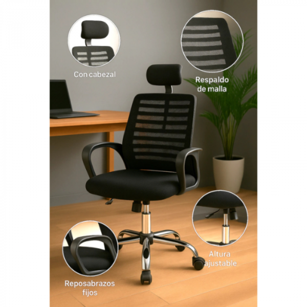 Esta Silla de Oficina Ergonómica con Cabecera está diseñada para brindarte soporte, frescura y confort durante toda la jornada.