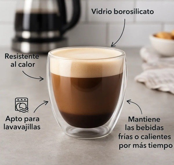 Disfrutá cada sorbo con estilo. Este vaso de café de doble pared de vidrio combina diseño moderno, resistencia y funcionalidad para transformar cualquier bebida en una experiencia especial.
